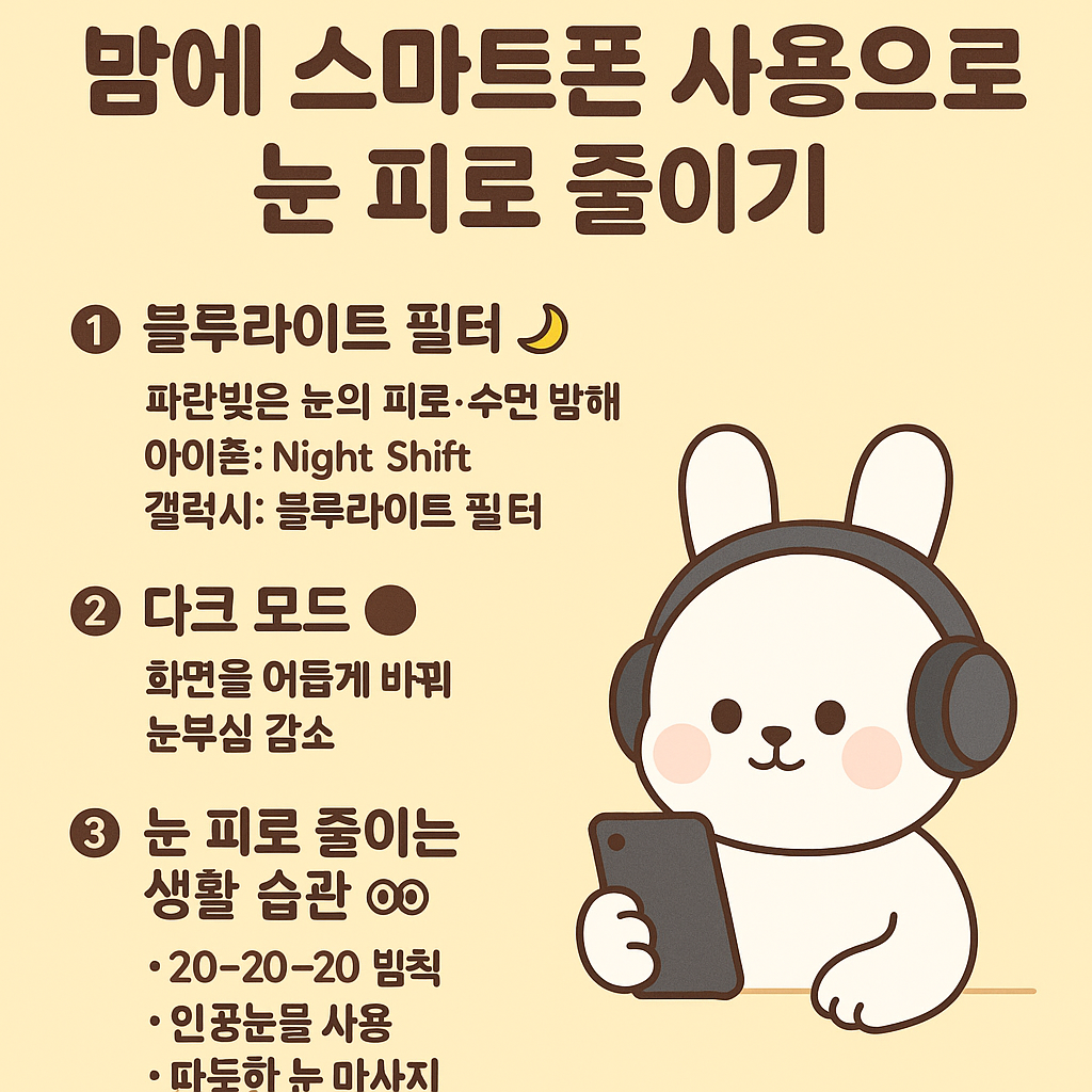 👉 이 세 가지만 챙겨도, 밤에 폰 보면서 오는 눈 피로가 크게 줄어듭니다!!!